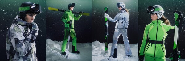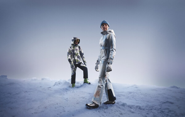 此次联名呈现的双板滑雪服系列,诠释了迪桑特在专业机能与艺术表达之间的精准融合。采用 DERMIZAX 防水、防风、透湿且具弹性的面料,在确保防护性能的同时兼顾滑雪动作的灵活延展,并配合 HEAT NAVI 吸光发热里衬,在严寒环境中实现保暖与透湿的平衡。男款滑雪服内里填充PRIMALOFT BLACK科技棉,结合BREATHING SYSTEM[1],兼具保暖性和透气性;女款滑雪服则采用PRIMALOFT SILVER,兼顾轻盈与保暖。剪裁方面男款以一片式肩部剪裁结构减少滑行过程中的束缚感,并配备可兼容雪盔的大尺寸防风帽,强化实用体验;女款则以针对亚洲女性优化的修身廓形打造,修饰身形并拉长腿部比例,设计语言取自雪道上的雪痕,将迪桑特品牌标识箭头元素融入分割线与细节表达,强化视觉识别。雪裤部分延续相同的科技结构,在脚口内侧加入耐磨拼接以提升耐用度与防护性。由Daniel Arsham定制的图案贯穿整体设计,使专业性能与艺术语言在统一视觉中达成平衡,展现独特的辨识度。