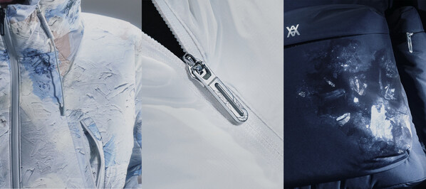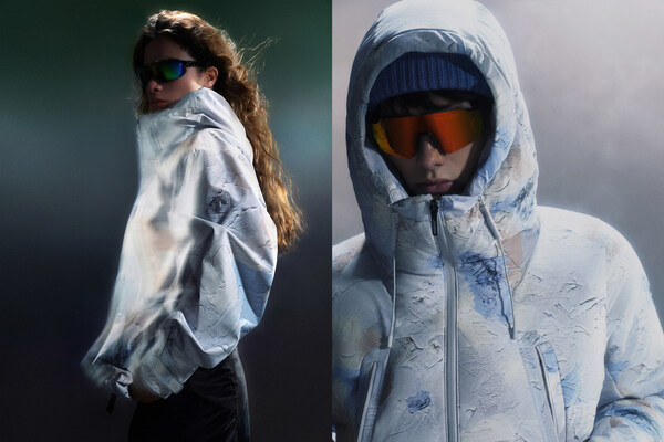 同时,联名系列亦纳入迪桑特两款具有代表性的产品——ALLTERRAIN系列"水沢"羽绒服与CREAS硬壳夹克。水沢羽绒服采用SEAM SEAL非缝纫热压胶贴合技术,以热熔贴合工艺替代传统缝线,提升雨雪天气羽绒服的可穿性和舒适度,并配合HEAT NAVI科技,提供充分保暖。CREAS硬壳夹克则延续品牌对功能与设计平衡的探索,采用立体剪裁与防护性面料,兼顾运动与城市场景的多重穿着需求。两款产品均融入 Daniel Arsham 的代表性视觉元素,以更具艺术感的方式诠释运动装备的现代形态,为经典单品注入新的创作创意与收藏价值。