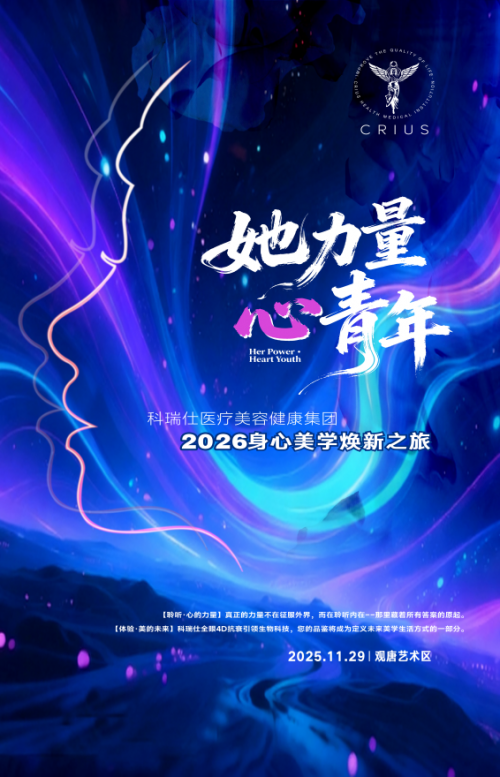 11月29日,科瑞仕医疗美容健康集团将以“她力量·心青年”为主题,举办年度品牌发布会,携三大前沿抗衰项目震撼亮相,为追求高品质生活的精英人群带来一场关于“年轻”的终极探索。